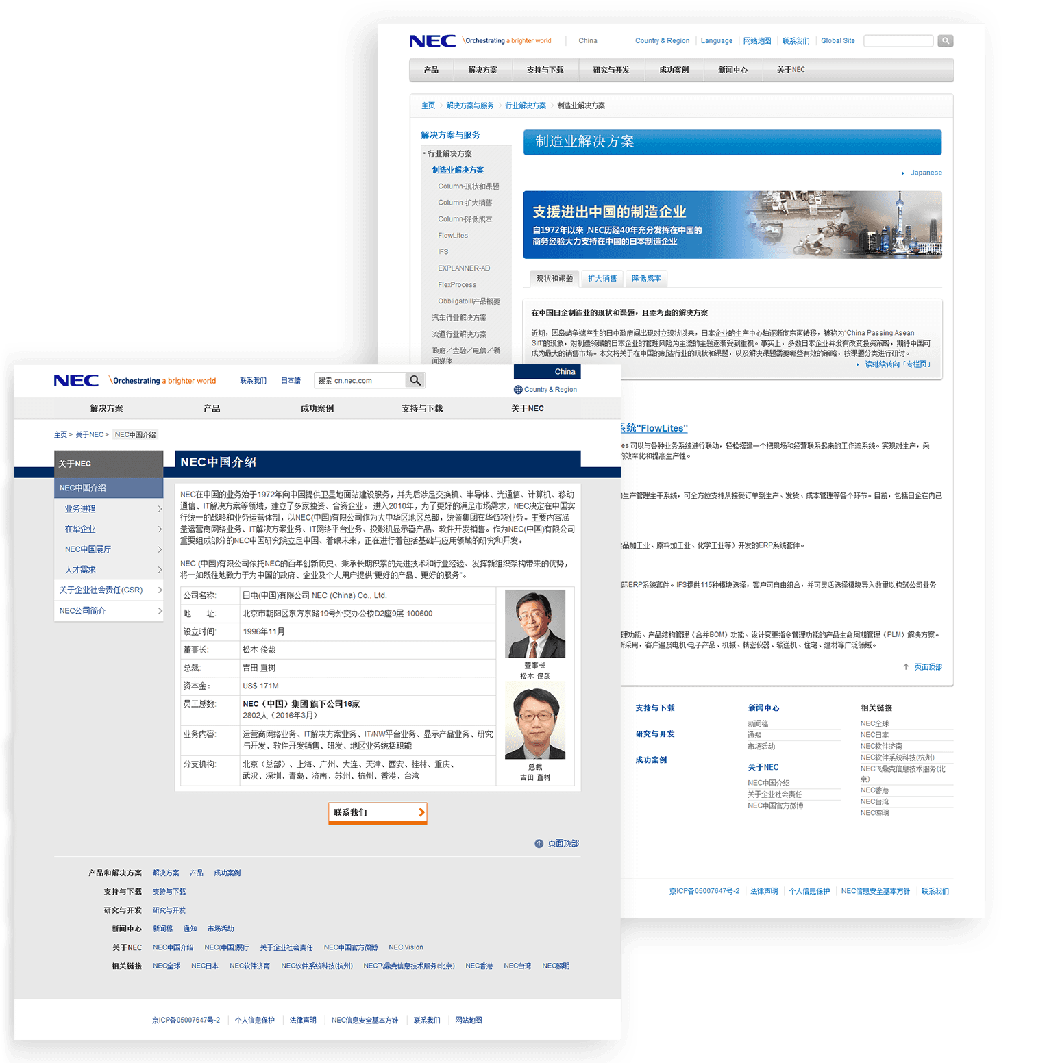 kaiyun(中国)一站式服务平台为NEC及旗下子kaiyun平台建立中文网站群,实现后台统一管理,同时规范网站群WEB视觉识别体