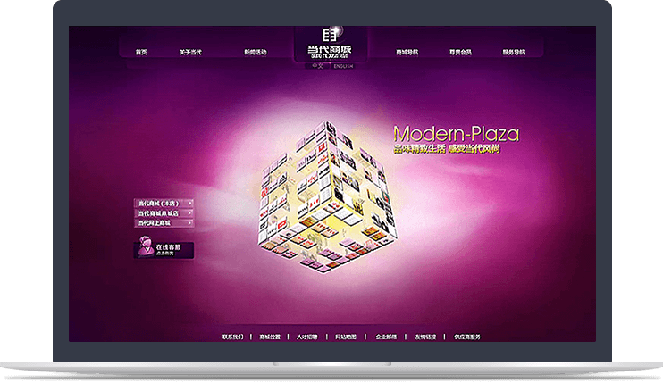 网站主视觉采用交互技术,有效传达当代商城整体品牌形象。