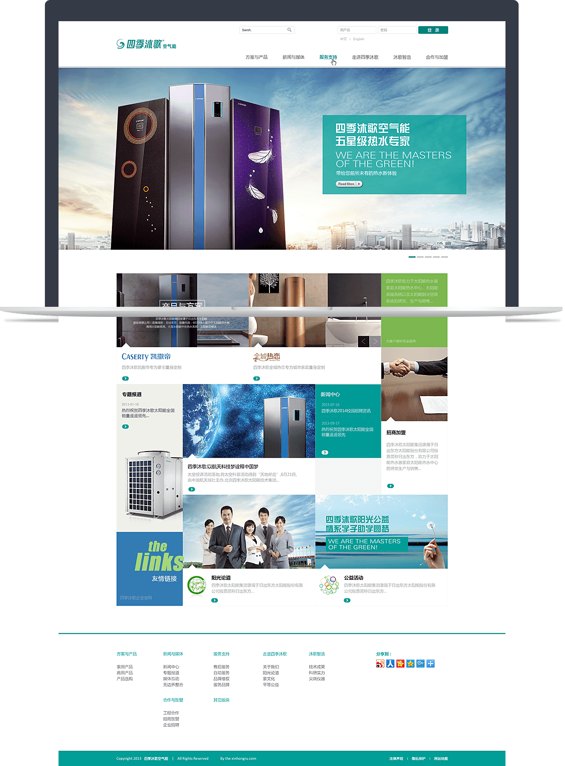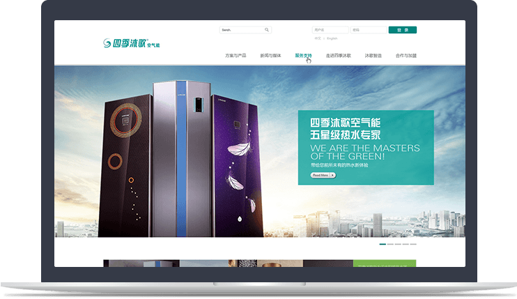 官网着力表现四季沐歌绿色能源产业的蓬勃朝气和社会责任,呈现出科技感、现代感