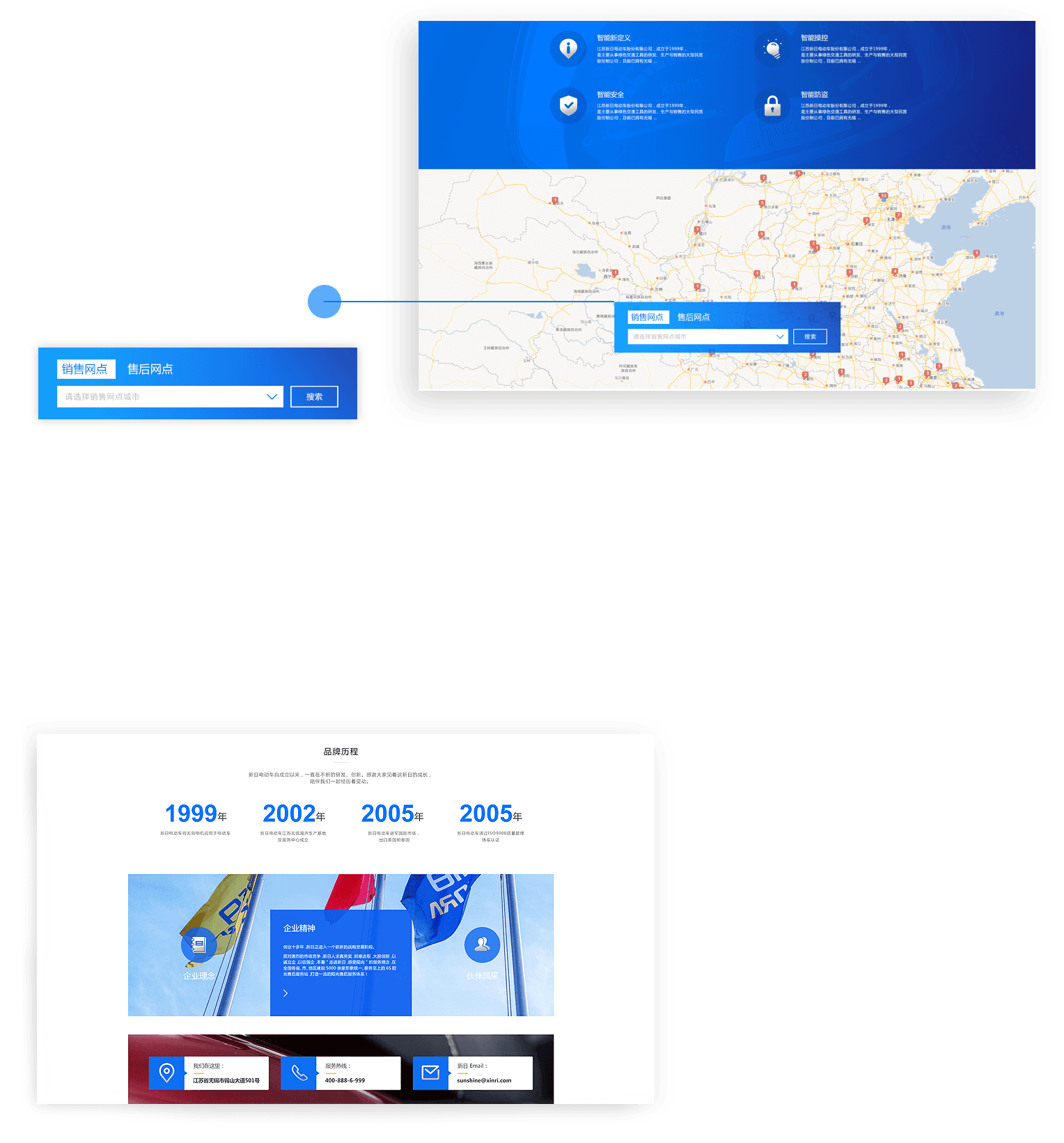 新日电动车官网调取百度地图实时数据,通过标签定位的方式,实现销售网点、售后网点的查询,极大的方便了用户,提升了服务质量和销售渠道。