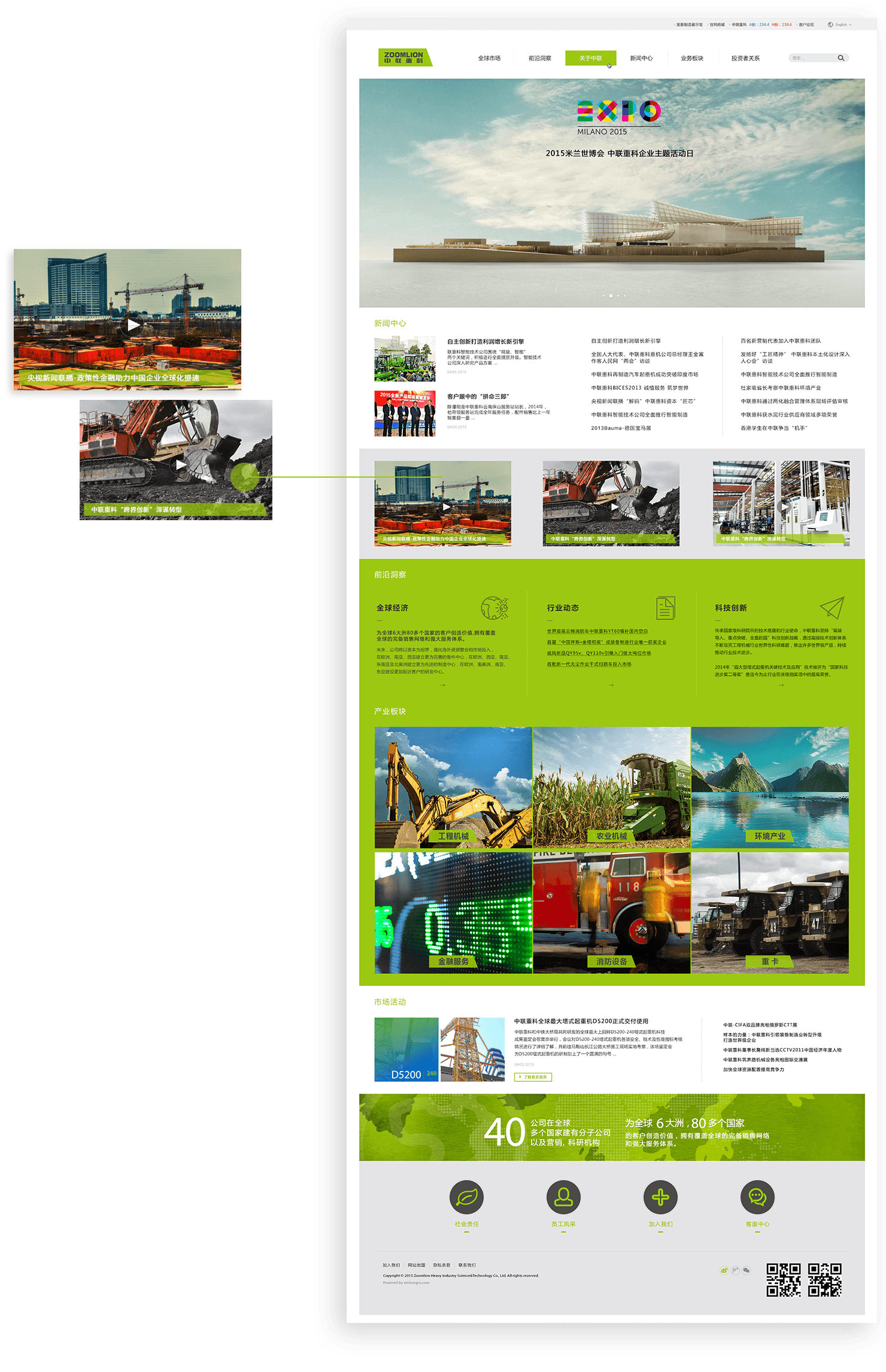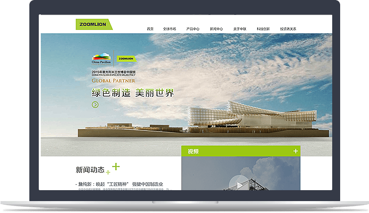 网站针对【关于中联】频道采用图片、文字、视频等多种元素结合的表现方式,塑造更加立体、多元、多维度的企业形象。视频的创新应用结合视觉、听觉等多重感官, 丰富用户的浏览体验。