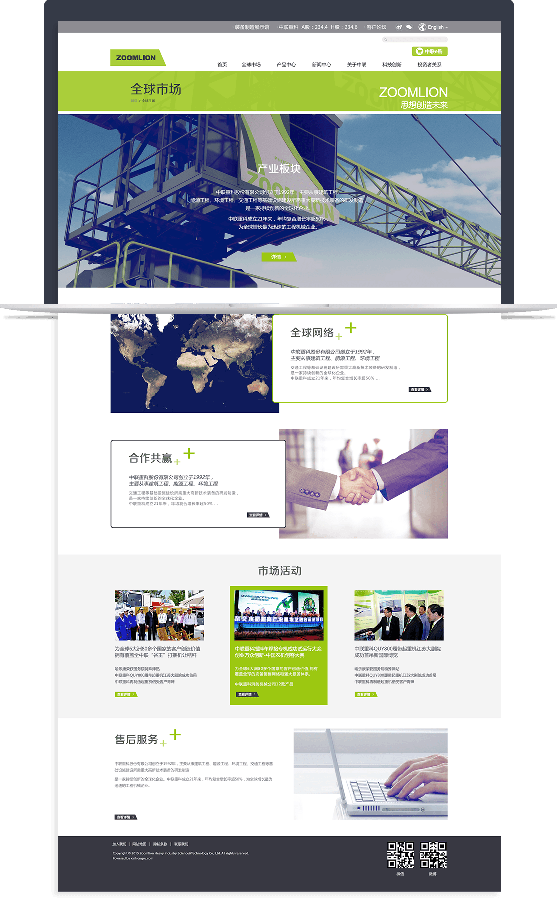 kaiyun(中国)一站式服务平台为中联重科打造现代化、科技感的集团官网——以国际流行的扁平化和色块方格的长布局为核心,通过错落排版的图片