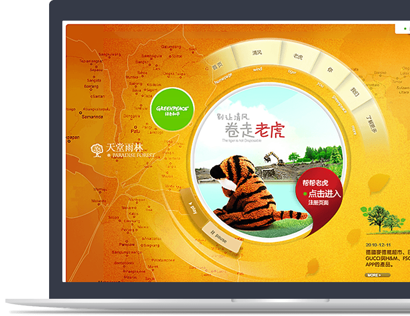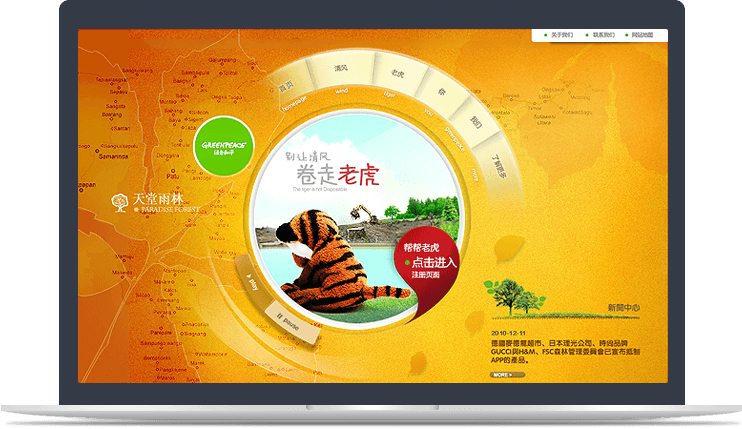 绿色和平网站举办《别让清风卷走老虎》等多个线上公益活动,吸引用户参与。kaiyun(中国)一站式服务平台长期负责其网站的维护和运营推广工作,保障网站稳定、有效运行。