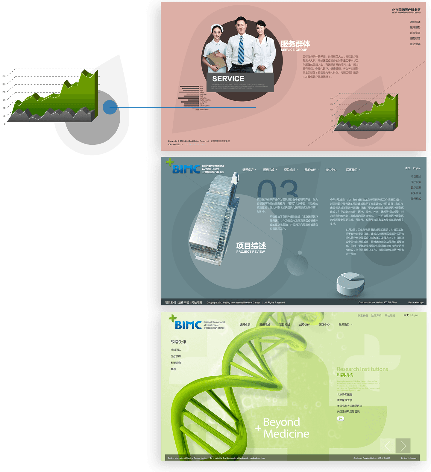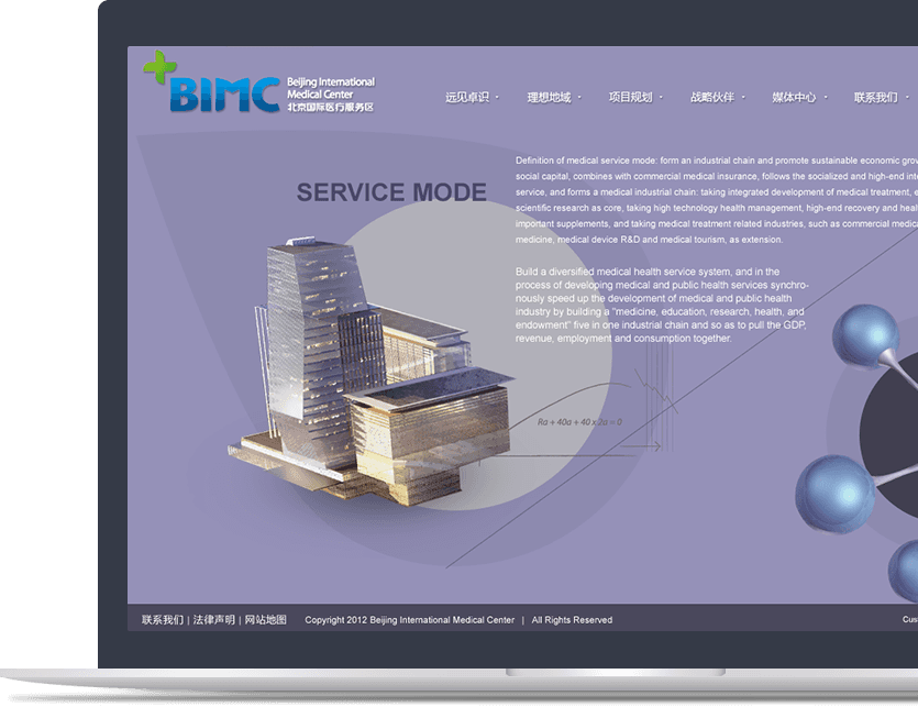网站利用视频元素和FLASH技术,实现三维立体的动画表现,展示北京国际医疗服务区全貌,形成强烈的视觉感受,塑造北京国际医疗服务区的品牌形象。同时,网站中大量鼠标交互效果,充分调动访问者的兴趣,提升用户的浏览体验。