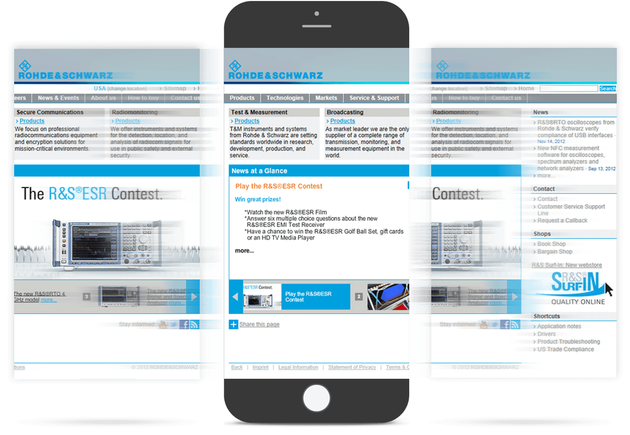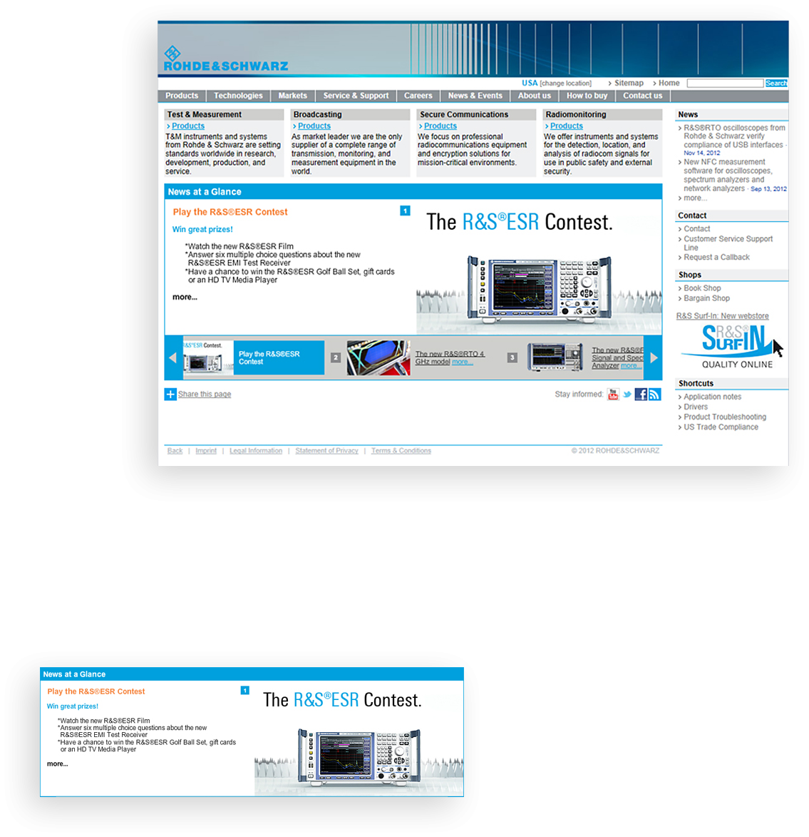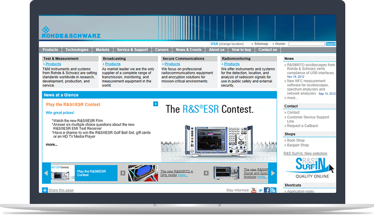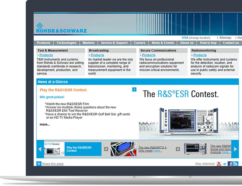 R&S以极简设计主义为核心,简化所有繁冗设计,重点表 现产品和技术,快速引导用户浏览信息。