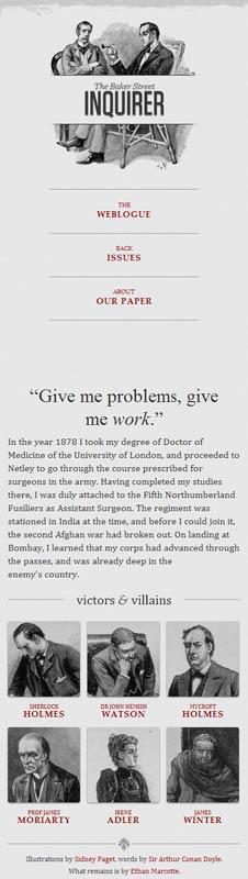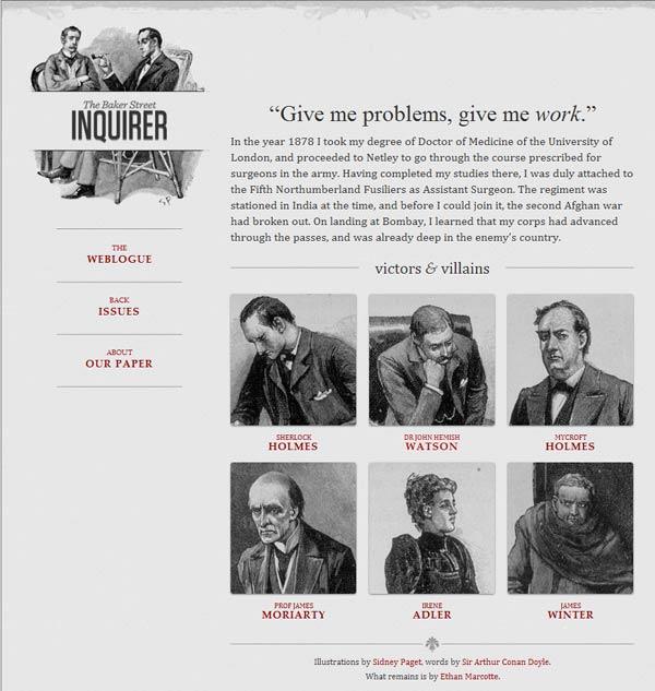 他制作了一个范例,里面是《福尔摩斯历险记》六个主人公的头像。如果屏幕宽度大于1300像素,则6张图片并排在一行。