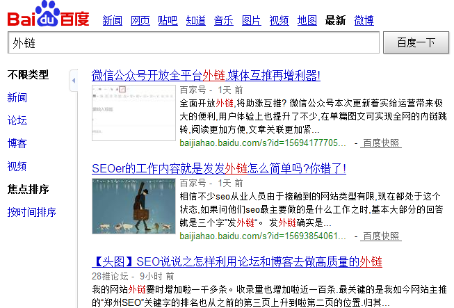 是不是就能看到很多最新“婚纱摄影”在论坛里面发布外链了,非常优质资源而且收录很也快,高效、免费。学会使用这一招再也不用担心找不到优质的外链资源了。