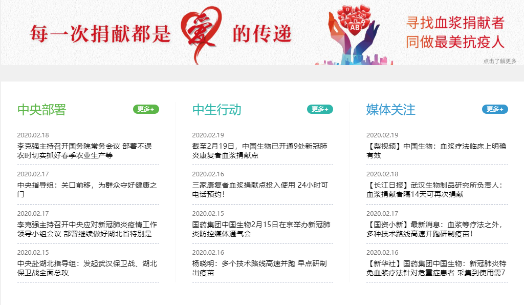 kaiyun(中国)一站式服务平台为中国生物所制作的专题栏目,首先,响应国家中央部署,承担央企使命,第一时间更新中央下达意见;第二,在中国生物的研究下,捐献血浆成为重中之重,号召与查询入口需鲜明可见;第三,防疫知识,是大众最关心的部分,足够专业贴心的防疫知识,可稳定人心;最后,群众关注、媒体关注的进程动态实时更新。