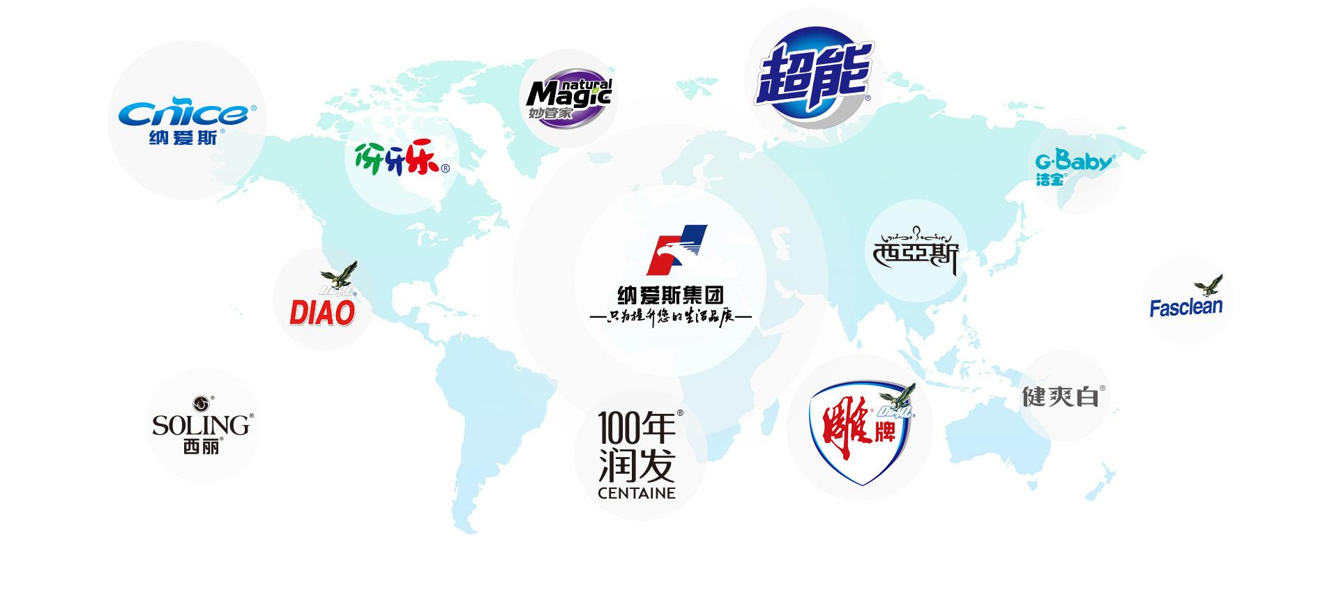纳爱斯集团在全球建成9大生产基地,构筑了线上线下并行的现代销售网络,自主品牌产品已进入包括美国、英国、日本等发达国家在内的70多个国家和地区。目前已拥有雕牌、超能、纳爱斯、健爽白、伢牙乐、100年润发、李字、妙管家等自主品牌,形成强有力的品牌矩阵,连年稳居“中国品牌价值评价”日化行业首位、“中国500最具价值品牌”日化品牌首位等。除日化行业外,也在化妆品、宠物、香氛、婴童、汽车清洁等多个行业及领域布局成势。